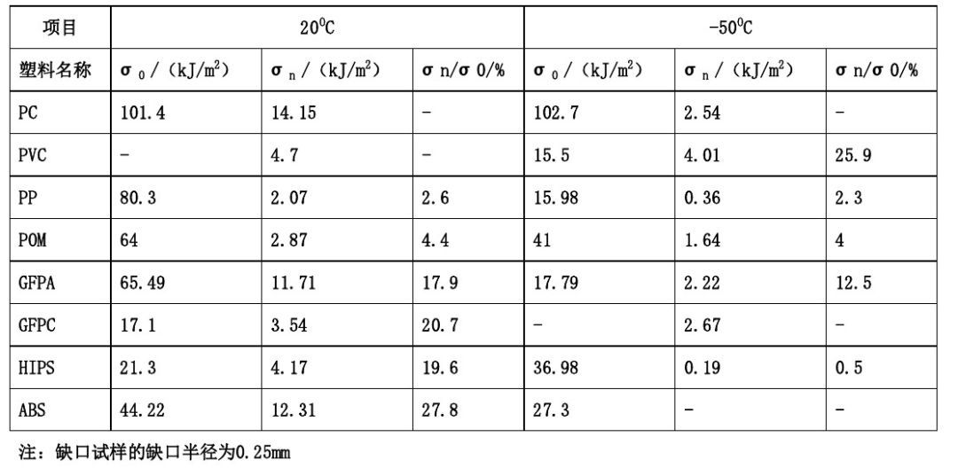 主要塑料無缺口塑料強度和缺口沖擊強度及其比值